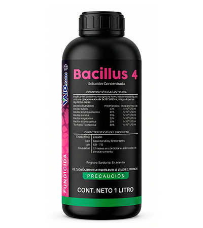 Bioinsumo formulado con un consorcio de cuatro especies de Bacillus y Torulopsis inconspicua, que ofrecen un amplio espectro contra hongos fitopatógenos y bacteriosis menores.